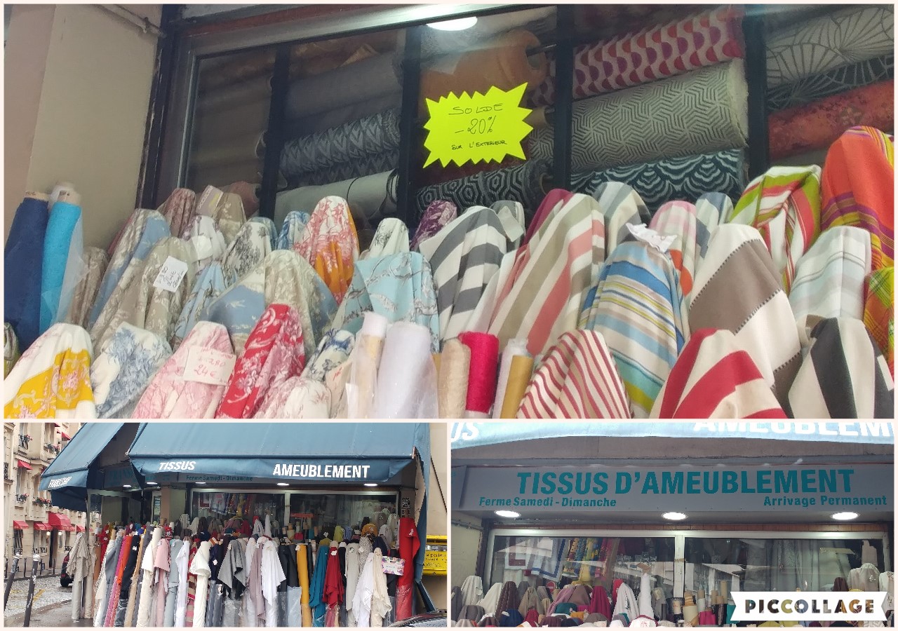 -Tissumarket 25 rue d’Orsel, tissus d’ameublement, les soldes sont sur le côté à l’extérieur, rue Seveste :