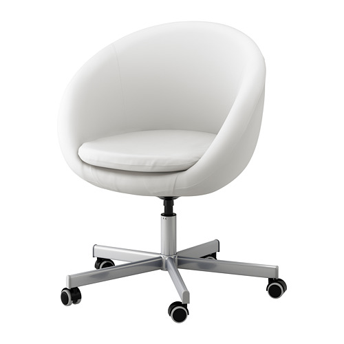 -J’ai une chaise de récup’ ikea SKRUVSTA super confortable et bien pratique avec les roulettes pour passer de la machine à coudre à la surjeteuse ou sur une des autres tables. Elle est pivotante, et réglable en hauteur (je met à la position la plus basse, c’est top pour moi). J’y met de temps en temps un petit coussin dans le dos.
