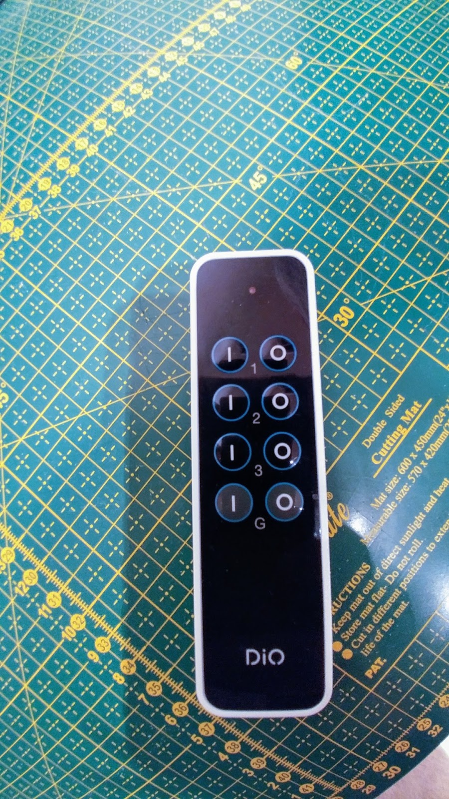 J’ai choisi un système de 3 luminaires, mis de façon à bien éclairer les zones qui m’intéressent (je peux orienter à la main les spots et j’ai fait attention à l’endroit exact pour les accrocher) : le devant de mes machines (et sans que je fasse de l’ombre dessus), le milieu de la salle (là où je peux mettre ma salle de coupe, et sinon, quand les amis viennent, c’est bien aussi pour éclairer la chambre d’ami), et ma mini table avec tapis de coupe. Les 3 luminaires peuvent s’allumer, s’éteindre et varier indépendamment, ce qui me permet à la fois de très bien voir, mais aussi d’éviter un surplus de lumière et donc des maux de tête. J’ai une petite télécommande pour tout ça, et depuis que j’ai mon super éclairage, je suis aux anges. J’ai eu les luminaires chez Castorama, et les micro module variateurs + télécommande chez Leroy Merlin.